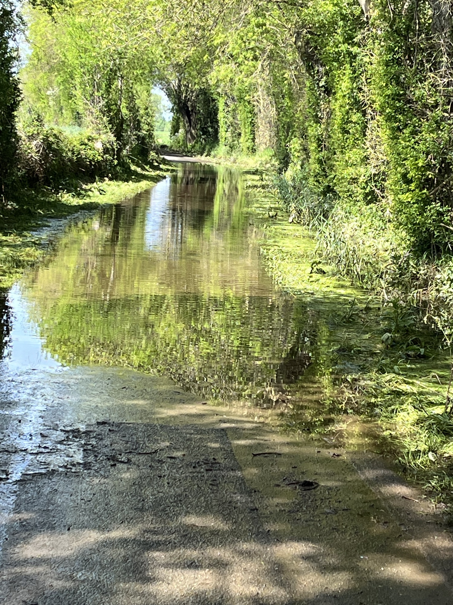 Oft musste ich die von Koomot vorgeschlagene Route umgehen und dann direkt auf einem höheren Damm fahren. Zu meiner linken und rechten stand Wasser.